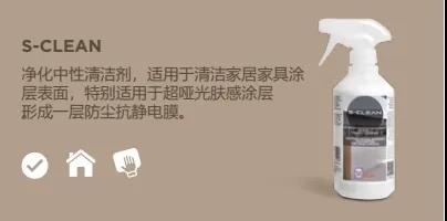 | S-Clean | 適合用于清潔室內(nèi)超啞光膚感涂層,除味除塵除菌,使用后的表面抗防靜電。 |